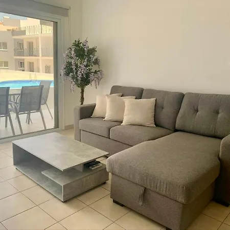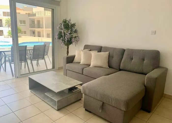 寝室1室のBeautiful 2 Bed Ground Floor Apartment With Pool パラリムニはプロタラス海洋水族館から徒歩で25分くらいです.